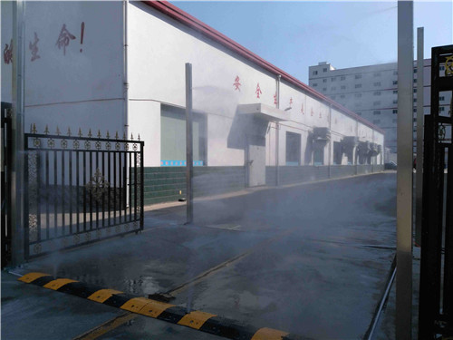 我公司消毒設(shè)備采用高壓霧化原理。其原理是利用工業(yè)高壓柱塞泵將消毒劑從耐高壓輸送管道輸送到專(zhuān)業(yè)的扇形噴嘴上,當(dāng)其接觸空氣時(shí)霧化,對(duì)車(chē)輛進(jìn)行消毒。