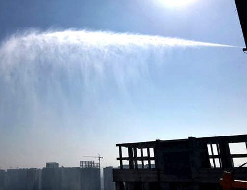 高壓旋轉(zhuǎn)噴霧樁抑塵設(shè)備是我公司新開發(fā)、研制和生產(chǎn)的具有高科技含量的一套針對工況企業(yè)室外大面積堆料場,馬路,礦山道路的抑塵系統(tǒng),它利用高壓水泵將經(jīng)過多級過濾器凈化處理過的水源(水源經(jīng)過特殊處理,去除水質(zhì)中的泥沙、鐵銹、油脂、鈣鎂離子)加壓至8-9Mpa,再通過耐高壓、耐酸堿性的高壓管路輸送到“360度旋轉(zhuǎn)”噴頭經(jīng)過噴灑。按照實(shí)際使用的要求,可在本地控制箱/遠(yuǎn)程操作平臺/手機(jī)APP平臺。設(shè)置噴霧的距離,噴霧的旋轉(zhuǎn)角度,噴霧的工作間隙。噴灑在需要抑塵的場地,水霧快速在空氣中擴(kuò)散后,揚(yáng)起的灰塵被噴霧形成的霧滴所覆蓋和包裹,顆粒自重增大而墜落,無法再揚(yáng)起,達(dá)到了抑塵的效果。